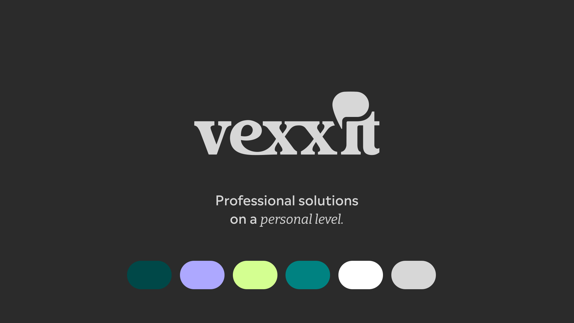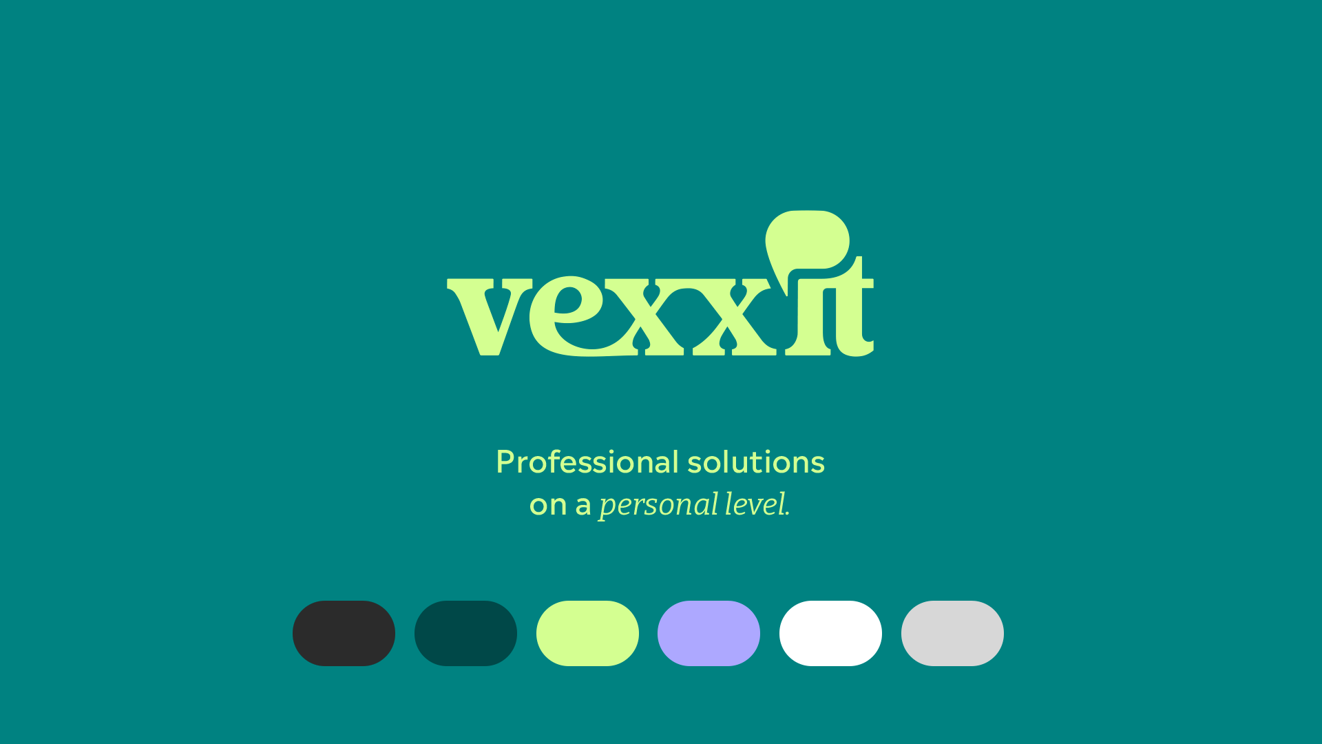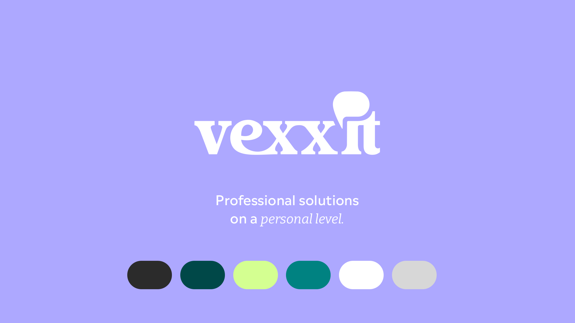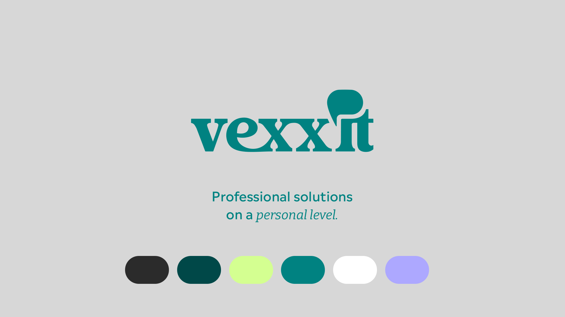 A sophisticated palette in the way that it works on multiple levels. Depending on which colours are paired together, we get a range of emotions across—from energized, powerful, and confident, to soothing, reassuring and friendly. It’s a refreshing take on the professional community and unique to Vexxit.