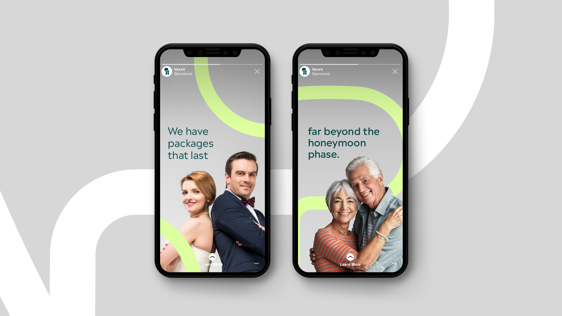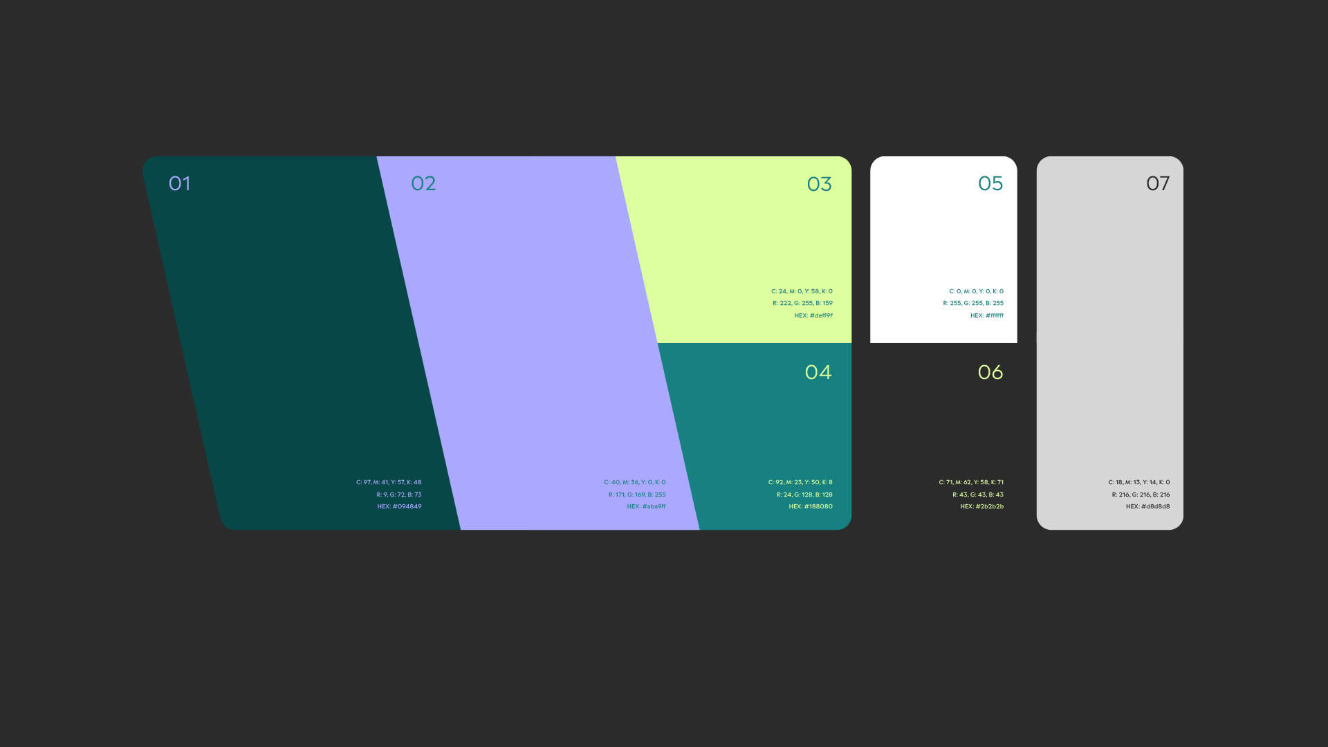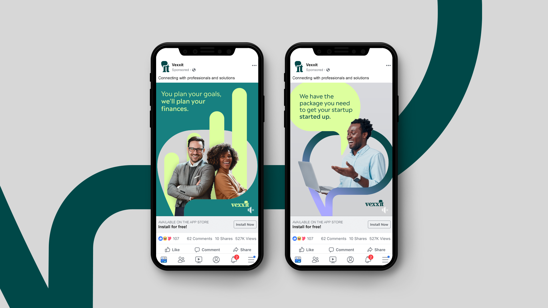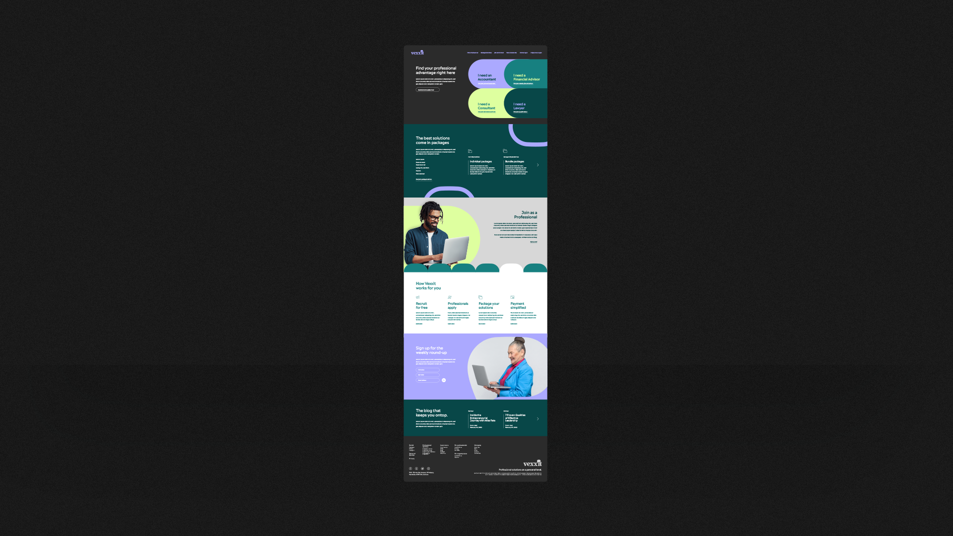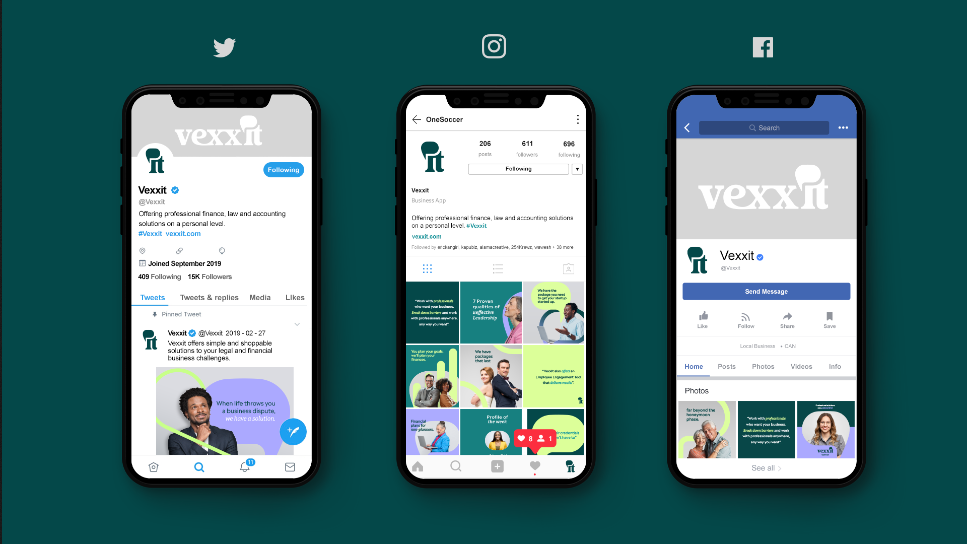 A sophisticated palette in the way that it works on multiple levels. Depending on which colours are paired together, we get a range of emotions across—from energized, powerful, and confident, to soothing, reassuring and friendly. It’s a refreshing take on the professional community and unique to Vexxit.